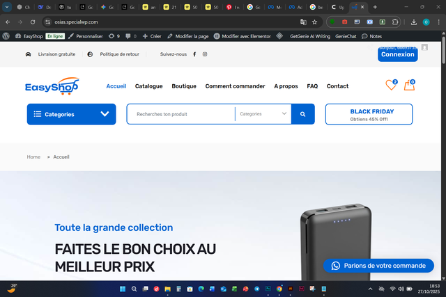 Design Premium avec WooCommerce & Elementor version gratuite (Alternative version Pro de Elementor à votre charge).