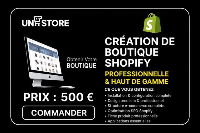 Je vais créer une boutique Shopify haut de gamme, moderne et optimisée pour convertir