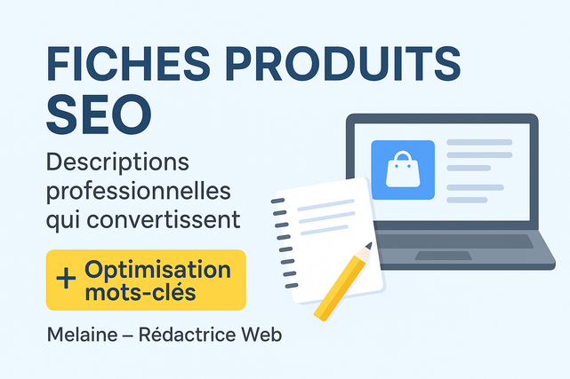 Rédactrice professionnelle depuis 5 ans, j’écris des contenus uniques, bien structurés et adaptés à votre ton de marque (professionnel, storytelling, fun…). Chaque fiche est conçue pour mettre en valeur vos bénéfices, vos caractéristiques et votre identité.