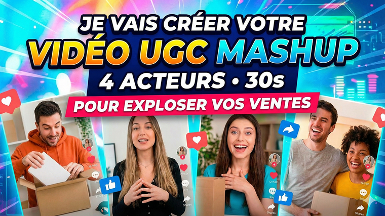 Je vais créer votre vidéo UGC Mashup (4 acteurs 30s) pour exploser vos ventes