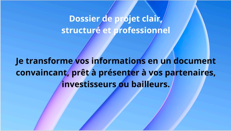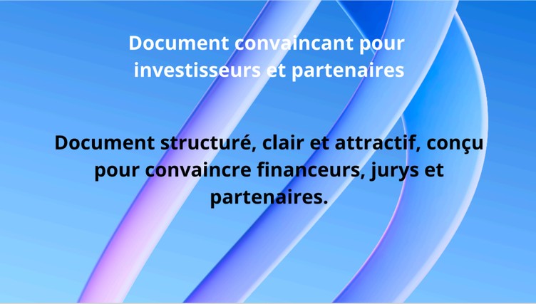 Votre projet mérite un dossier solide, clair et convaincant : un document professionnel capable de rassurer, convaincre et obtenir l’adhésion de vos partenaires, investisseurs, associations ou institutions.
