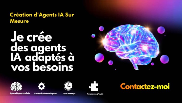 Oui ! Les agents IA peuvent s'intégrer à la plupart des outils professionnels via API : CRM (HubSpot, Salesforce), messageries (WhatsApp, Slack), bases de données (Airtable, Notion), outils marketing, etc. Si vous utilisez des outils spécifiques, contactez-moi pour vérifier la compatibilité.