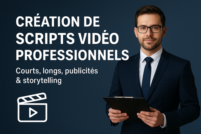 Passez commande maintenant et recevez un script clair, professionnel et prêt à tourner, parfaitement adapté à votre audience et à votre objectif.
