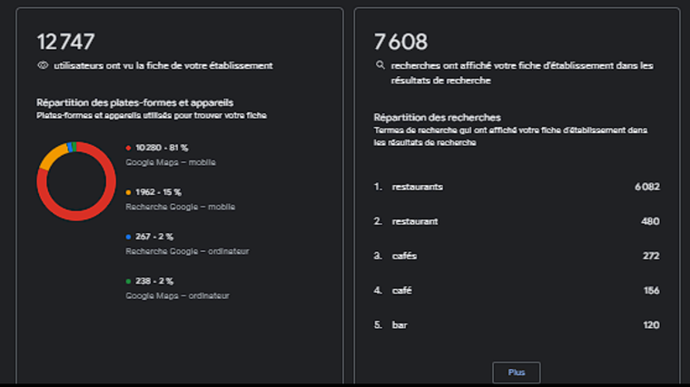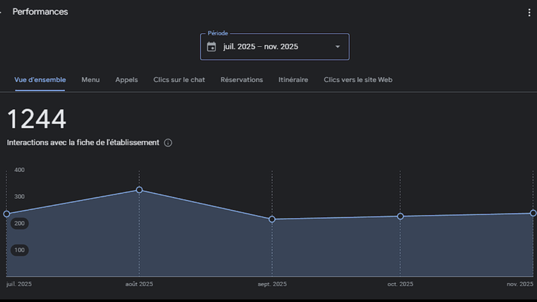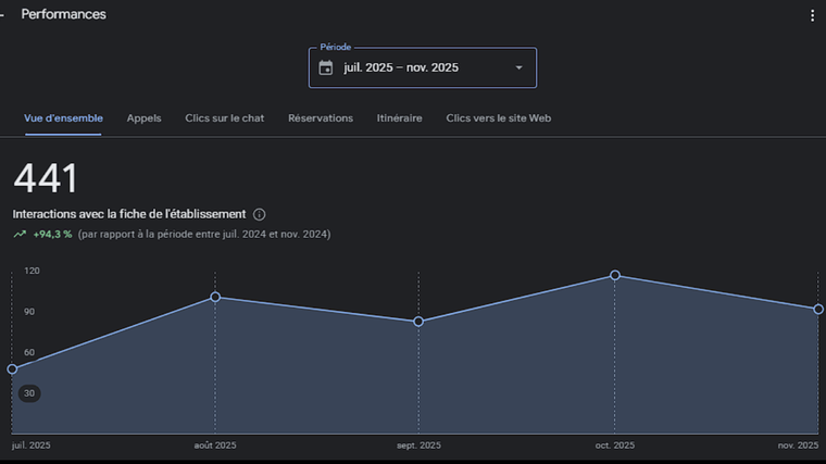 • Insights GMB analysés + reporting mensuel : vues, appels, directions, CTR – je vous montre les résultats concrets