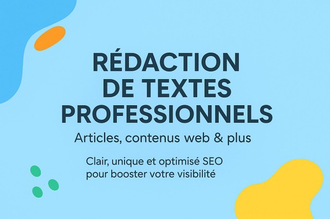 Avec plus de 4 ans d’expérience, je rédige des articles, pages web, fiches produits et textes personnalisés adaptés à votre audience. Chaque contenu est unique, sans plagiat, livré dans les délais et avec un ton qui vous ressemble.