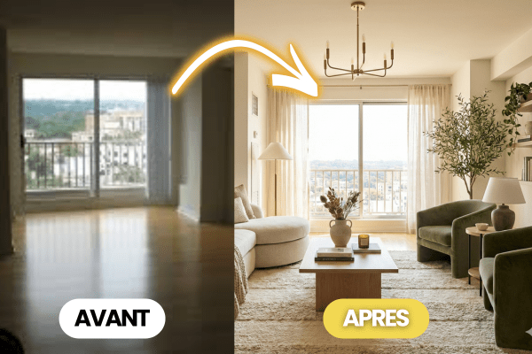 Une photo meublée et lumineuse génère 5x plus de clics qu'une pièce vide. Ne laissez pas les acheteurs deviner la taille du salon : montrez-leur !