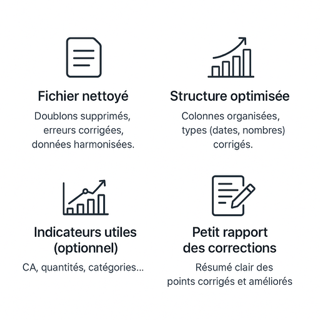 Livraison d’un fichier propre (.xlsx ou .csv)