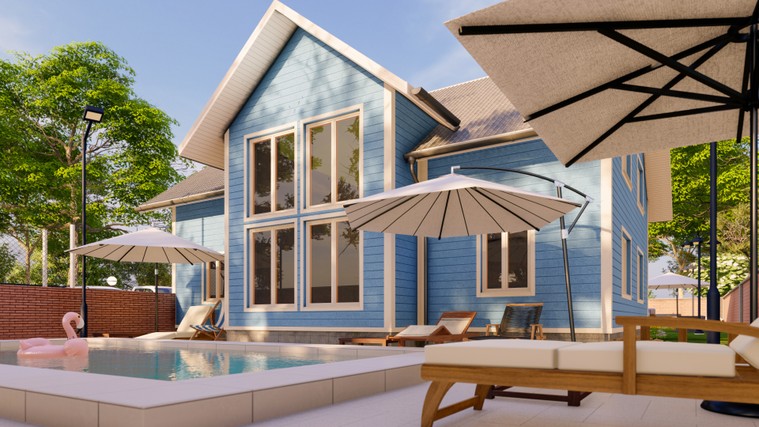 Base 23,45 $US ≤ 20 m² 1 rendu 3D photoréaliste extérieur ou jardin Jusqu’à 2 retouches 4 jours