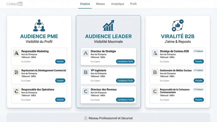 Sur le premier réseau B2B au monde, la crédibilité est la clé. Que vous soyez une Entreprise cherchant à rassurer des investisseurs, ou un Profil Personnel voulant attirer des recruteurs, un profil avec une audience vide renvoie une image d'amateurisme.