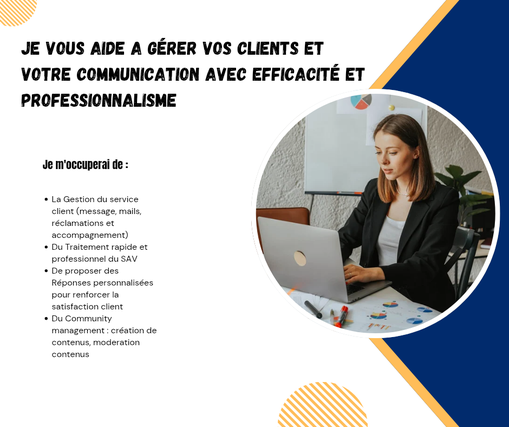 Je suis spécialisée dans la gestion du service client, du SAV et de la communication digitale, avec une solide expérience auprès d’entreprises et d’entrepreneurs.