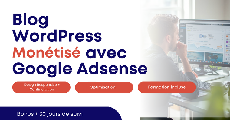 inclus : installation, optimisation SEO, configuration AdSense, design et formation.