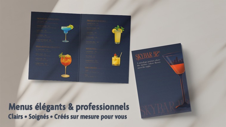 Je vais créer un menu élégant, clair et professionnel pour votre restaurant / bar / café