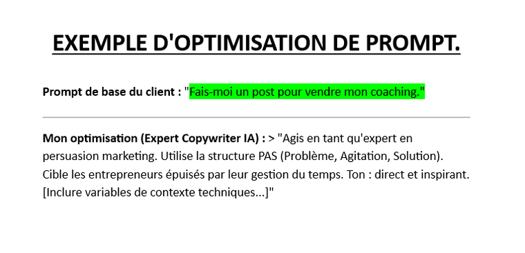 POUR 17,61 $US, JE VAIS OPTIMISER VOS 5 PROMPTS DE COPYWRITING CLÉS.