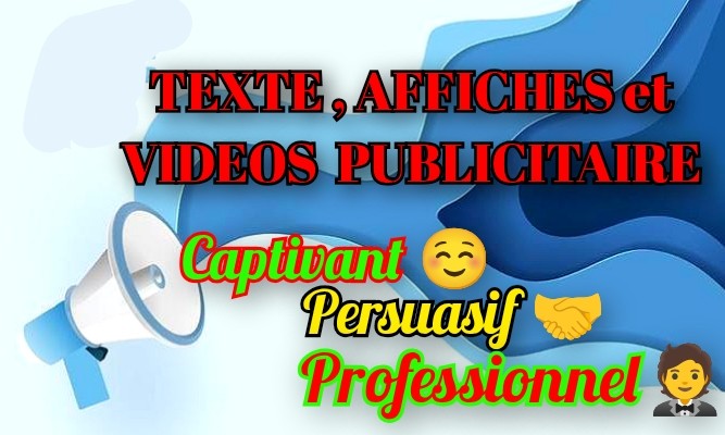 Je vous fais des fortes publicités écrit ou oral pour convaincre et attirer de la clientèle sur vos produit ou services