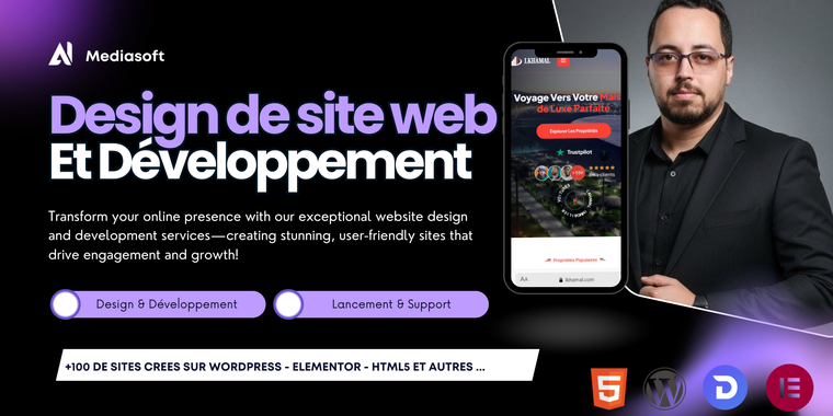 👋 Développeur Web professionnel spécialisé dans la création de sites modernes, performants et adaptés aux besoins de chaque client. J’accompagne les entreprises, entrepreneurs et particuliers dans la conception de sites web sur-mesure, qu’ils soient construits avec WordPress, Divi, Elementor, ou entièrement en HTML / CSS / JavaScript / PHP. ✅ Mes Services : Création de sites vitrines professionnels Développement de sites sur WordPress (Divi, Elementor, thèmes personnalisés) Développement sur-mesure en HTML / CSS / JavaScript / PHP / MySQL Optimisation SEO (technique + contenu) Refonte de sites anciens Correction de bugs / optimisation de performance Intégration API & fonctionnalités personnalisées Responsive design (mobile/tablette/desktop) Sécurisation + optimisation de la vitesse (PageSpeed) 🎯 Pourquoi me choisir ? Expérience solide en développement web Code propre, structuré et optimisé Communication claire et travail rapide Respect des délais & support après livraison Solutions modernes avec un excellent rapport qualité/prix 🔧 Technologies : WordPress • Divi • Elementor • HTML5 • CSS3 • JavaScript • jQuery • PHP • MySQL • Bootstrap • JSON • API • SEO • UI/UX