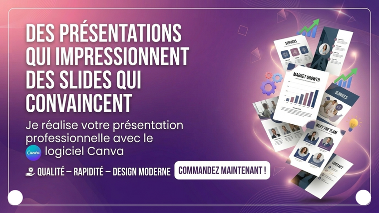 Je vous crée une présentation complète avec Canva Pro, pensée pour séduire, convaincre et mettre vos idées en lumière.