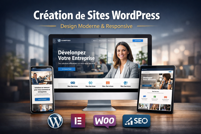 Je vais créer pour vous un site vitrine WordPress attractif, moderne et conçu pour mettre en valeur votre activité, votre image et vos services.