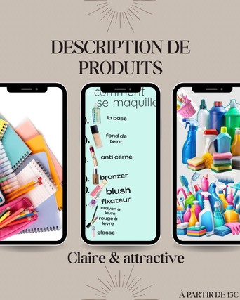 Je vous aide à transformer les caractéristiques de votre produit en une description simple, attractive et compréhensible, afin de rassurer vos clients et de valoriser efficacement ce que vous proposez.
