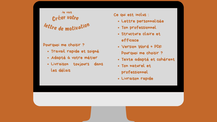 Bonjour ! Je propose des services simples, rapides et soignés : création et mise en forme de documents, CV professionnels, lettres de motivation, organisation de fichiers, tableaux Excel propres, petites tâches numériques et transcription audio. J’aime rendre les documents clairs, lisibles et professionnels. Travail sérieux, délais rapides et communication efficace. Mon objectif : vous faciliter la vie avec un résultat propre et impeccable