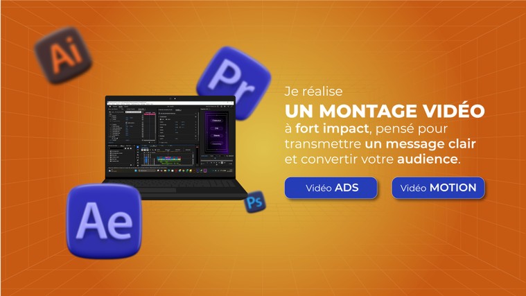 Spécialisé dans la création de vidéos ads et de contenus motion dynamiques, je transforme vos idées en visuels animés modernes, clairs et orientés performance. Chaque vidéo est pensée pour valoriser votre marque, susciter l’émotion et inciter votre audience à passer à l’action.