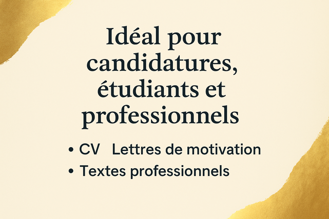 Vous recevez des documents corrigés, lisibles et prêts à être envoyés, sans dénaturer votre personnalité ni votre parcours.