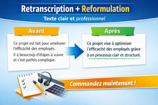 Je vais retranscrire des audios/vidéos et reformuler des textes pour qu'ils soient professionnelles