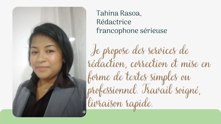 Rédactrice francophone sérieuse. Je propose des services de correction, rédaction et mise en forme de textes simples. Travail soigné, livraison rapide.