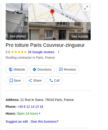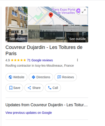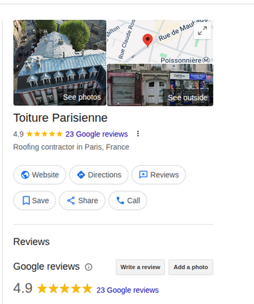 Une fiche Google Business Profile permet à votre entreprise d’apparaître dans les résultats locaux de Google et sur Google Maps. Elle s’affiche lorsqu’un internaute recherche un service lié à votre activité et à votre zone géographique. Elle présente les informations essentielles de votre entreprise et simplifie le contact avec vos clients.