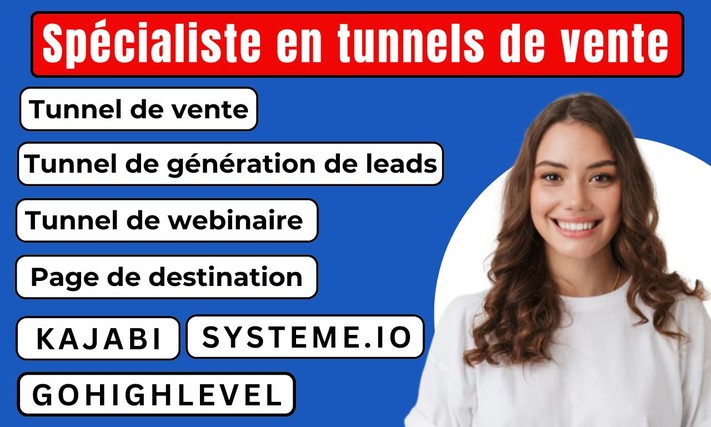 Je vous aide à créer des tunnels de vente performants et des landing pages optimisées sur Kajabi, Systeme.io et GoHighLevel, conçus pour transformer vos visiteurs en prospects, puis en clients.