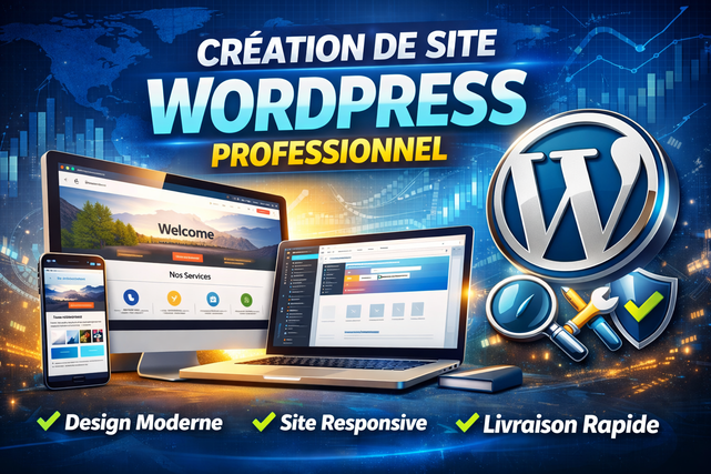 Je vous crée un site web WordPress professionnel, moderne et adapté à votre activité, afin de renforcer votre crédibilité et faciliter la prise de contact avec vos clients.