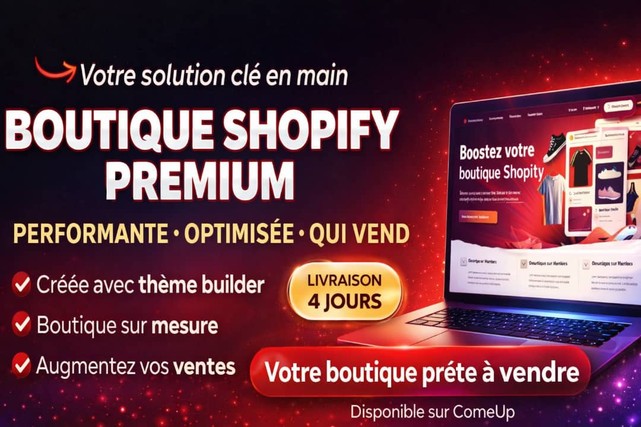 Je vous crée une boutique Shopify Premium, clé en main, prête à recevoir vos visiteurs et à générer vos premières ventes.~****