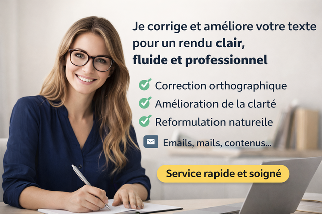 Je vous aide à corriger et améliorer vos textes pour qu’ils soient clairs, naturels et agréables à lire.