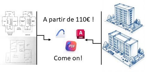 Une fois que je reçois votre image, croquis ou esquisse, entant que technicien supérieure expérimenté en Génie Civil, je me charge de les transcrire sur mesures et précision dans les logiciels de votre choix et par conséquent en version PDF, DWG... à des coûts vraiment concurrentielle.