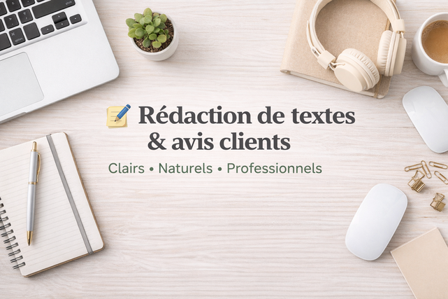 Bonjour et bienvenue 👋 Je m’appelle Alexia, je suis rédactrice francophone et je vous accompagne dans la création de contenus clairs, naturels et efficaces, adaptés à votre besoin. ✍️ Ce que je peux faire pour vous : • Rédaction d’avis produits • Descriptions de produits • Textes courts • Reformulation de textes • Correction orthographique 🎨 Je propose aussi la création de visuels professionnels sur Canva : • Posts Instagram / Facebook / LinkedIn • Carrousels Instagram • Covers Reels / TikTok • Visuels promotionnels & bannières ✅ Pourquoi me choisir ? ✔ Livraison rapide ✔ Communication simple et réactive ✔ Travail sérieux, soigné et professionnel ✔ Adaptation à votre style et votre marque 📩 N’hésitez pas à me contacter avant commande si vous avez une demande spécifique, je réponds avec plaisir 😊