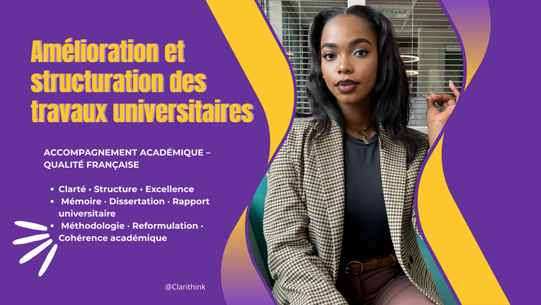 Je vous propose un service d’accompagnement destiné aux étudiants souhaitant améliorer la structure, la clarté et la cohérence de leurs travaux académiques.