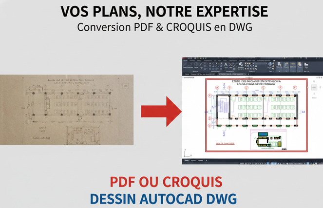 Avec ce service, je transforme vos fichiers JPG, PNG, PDF ou PSD en plans AutoCAD structurés et bien organisés, avec des calques propres, des traits nets et un dessin facile à comprendre et à modifier. Le fichier final est prêt à être utilisé pour vos études, présentations ou modifications techniques. Une communication claire et un suivi sérieux sont assurés tout au long du projet.