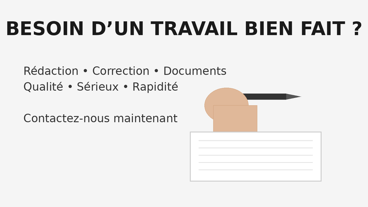 Je vous propose un service de correction professionnelle de vos textes afin de les rendre clairs, lisibles et sans fautes.