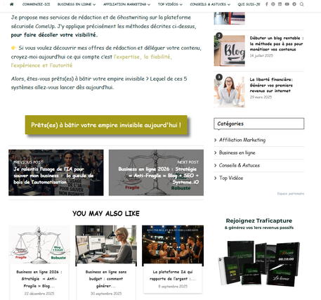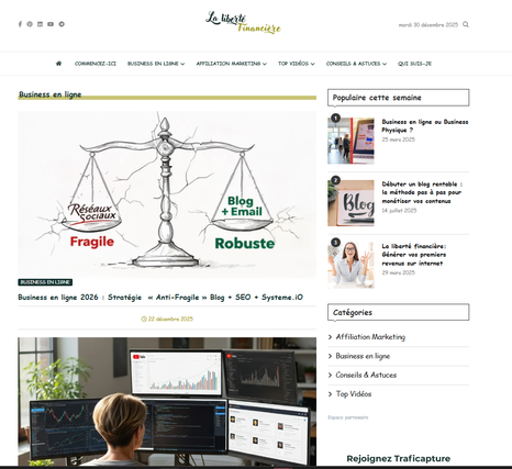 Je suis SanderSan, éditrice de sites et stratège digitale. Mon propre blog d'autorité, lalibertefinanciere.com, est la preuve vivante de ma méthode, j'ai réussi à stabiliser et faire croître sa visibilité SEO en 2025 grâce à une structure rigoureuse et un réseau de sites (PBN) performant.