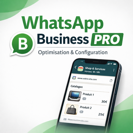 Je configure ensuite votre compte WhatsApp Business de manière claire et sécurisée, en respectant les bonnes pratiques professionnelles.