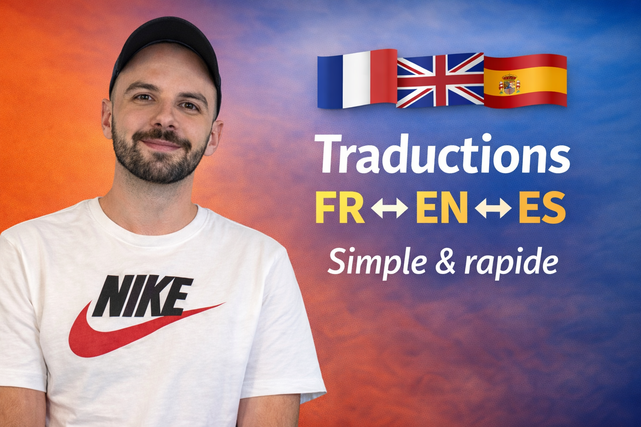 Passionné par les langues et actuellement basé au Japon, je propose des traductions simples et naturelles en français, anglais et espagnol. Je travaille surtout sur des textes courts : messages, mails, descriptions ou contenus du quotidien. Le décalage horaire est un avantage : je réponds vite et peux souvent livrer plus tôt que prévu. N’hésitez pas à m’écrire avant de commander pour vérifier que votre projet correspond à ce que je propose.