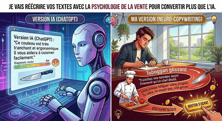 Je vais réécrire vos textes avec la psychologie de la vente pour convertir plus que lIA