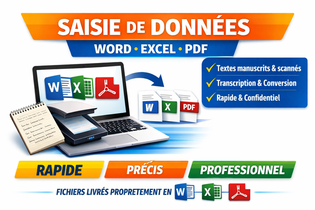Les fichiers finaux sont livrés en Word, Excel ou PDF, avec ou sans mise en page, selon vos instructions.