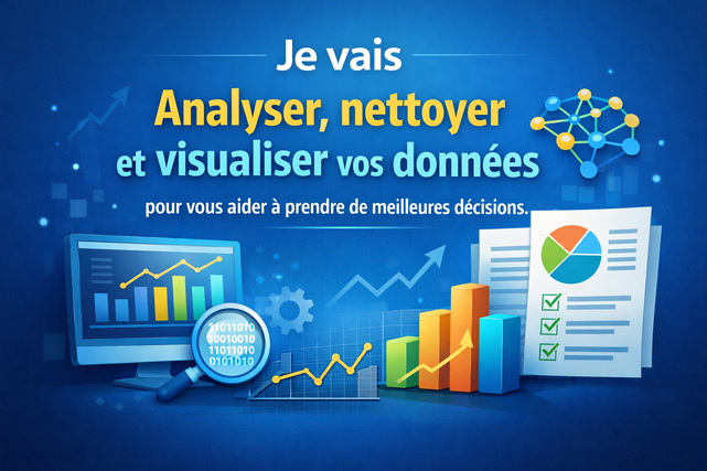 Je vais analyser, nettoyer et visualiser vos données afin de vous fournir des résultats clairs, compréhensibles et directement exploitables.