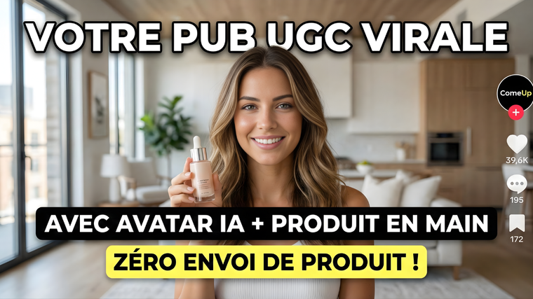 Grâce à mon expertise unique en Intelligence Artificielle et en Composition Visuelle, je crée des publicités UGC virales pour TikTok, Reels et Shorts où l'avatar tient VOTRE produit dans sa main.
