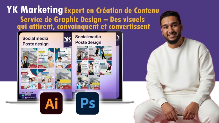 Je suis spécialiste en marketing digital et communication avec plus de 14 ans d’expérience, j’accompagne les entrepreneurs, TPE/PME et marques e‑commerce à développer une image professionnelle et à attirer plus de clients grâce à des supports visuels percutants et des stratégies sur‑mesure. Avec YK MARKETING, vos flyers, affiches, posts réseaux sociaux, dépliants et brochures deviennent de vrais outils de communication pensés pour vendre et renforcer votre marque. J’ai travaillé sur des projets en Europe et à l’international dans plusieurs secteurs (services, retail, éducation, etc.), en combinant design, stratégie de contenu et publicité en ligne. Je peux vous accompagner de A à Z : définition de votre positionnement, création de votre identité visuelle, conception de vos supports marketing et optimisation de votre présence digitale.