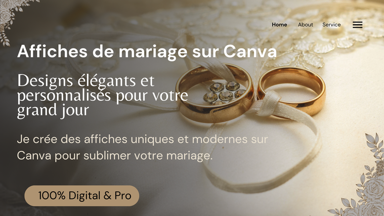 Je vais créer des affiches de mariage élégantes et personnalisées sur Canva
