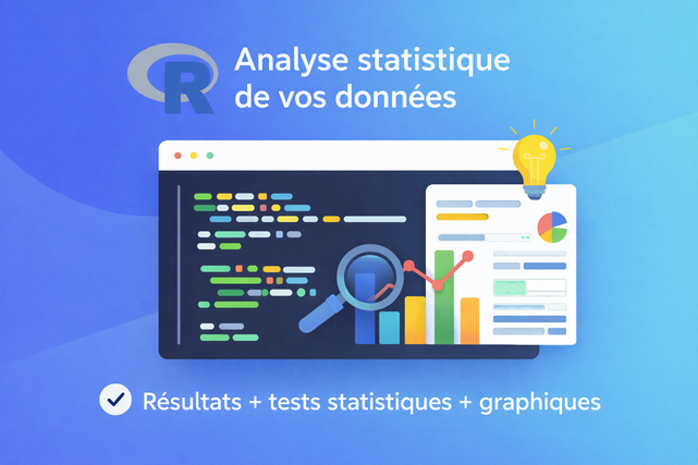 Bonjour et bienvenue sur mon profil ! Je suis analyste de données spécialisé en R, avec une expérience concrète sur le nettoyage, l’analyse et l’automatisation de traitements de données. Ce que je peux faire pour vous : Nettoyage et préparation de données (NA, doublons, encodage, formats) Création de scripts R sur mesure Automatisation de calculs et de traitements répétitifs Fusion de plusieurs fichiers / bases de données Analyse statistique de donnée Création de graphiques clairs et professionnels (ggplot2) Aide, correction et explication de code R De par ma formation, j’ai l’habitude de travailler sur des données environnementales, agricoles et statistiques, mais je m’adapte facilement à tout type de données. Mon objectif : vous fournir un résultat clair, fiable et réutilisable, avec du code commenté et compréhensible. Réactif, pédagogue et rigoureux, je privilégie les missions efficaces et les livraisons rapides. N’hésitez pas à me contacter pour discuter de votre besoin, même si celui-ci n’est pas encore totalement défini.
