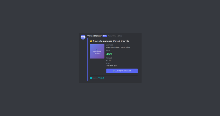 - Alertes Instantanées : Recevez une notification immédiate sur Discord ou Telegram dès qu'un article est mis en ligne.