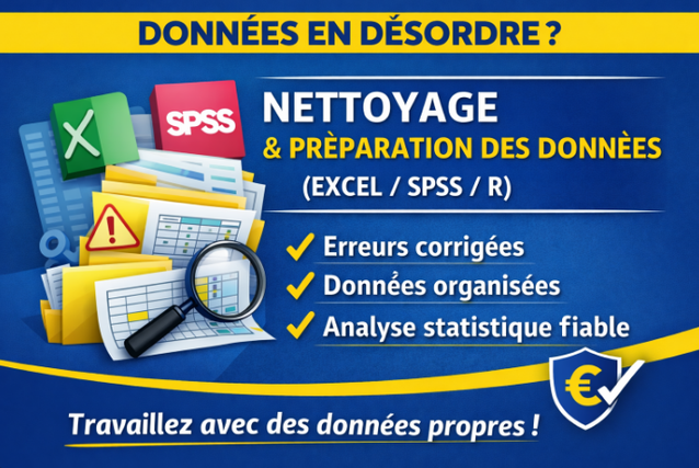 Je vais nettoyer et préparer vos données (Excel / SPSS / Stata / R) pour une analyse statistique fiable