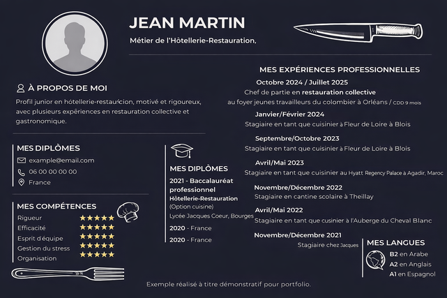 d’un CV moderne et professionnel livré dans le délai indiqué.